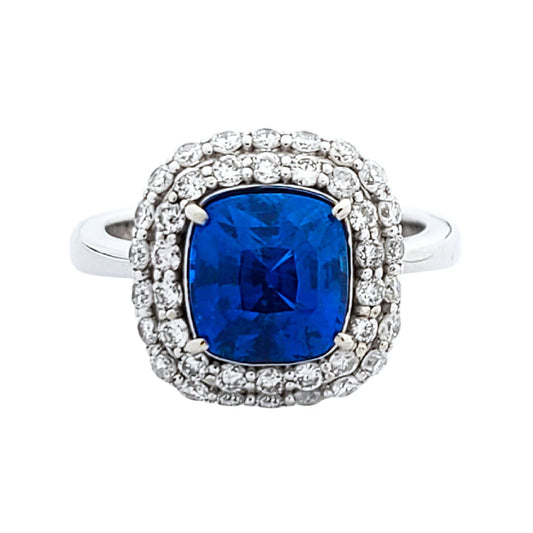 Sapphire ring gold white 14k diamond madagascar blue cushion 4.95ctw gia certified