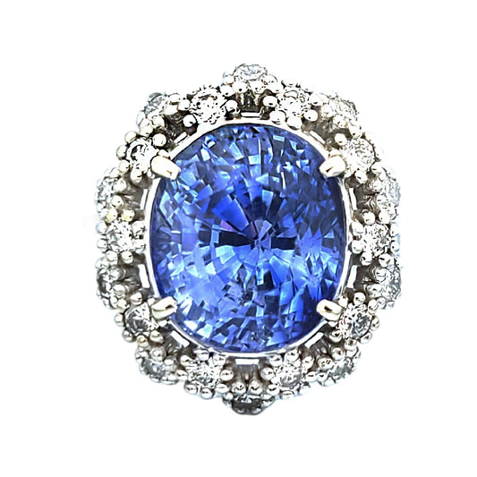 Sapphire & diamond 14k white gold ring ceylon sri lanka 7.76ctw gia certified