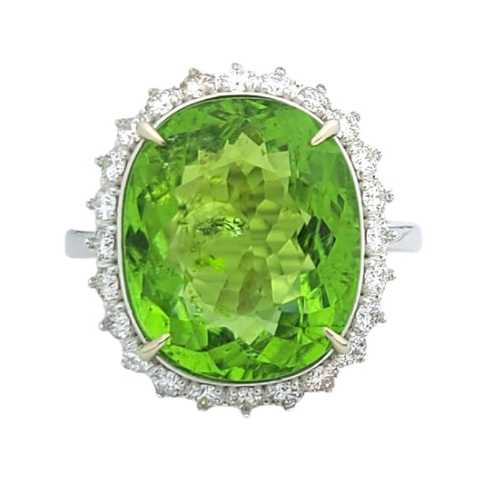 Green paraiba tourmaline copper bearing ring diamond 14k white gold 10.72 ctw gia certified green
