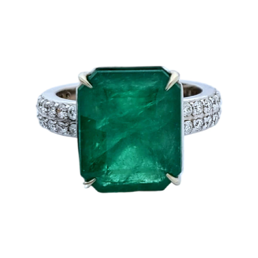 Emerald & diamond ring gold white14k gia certified 7.87ctw green