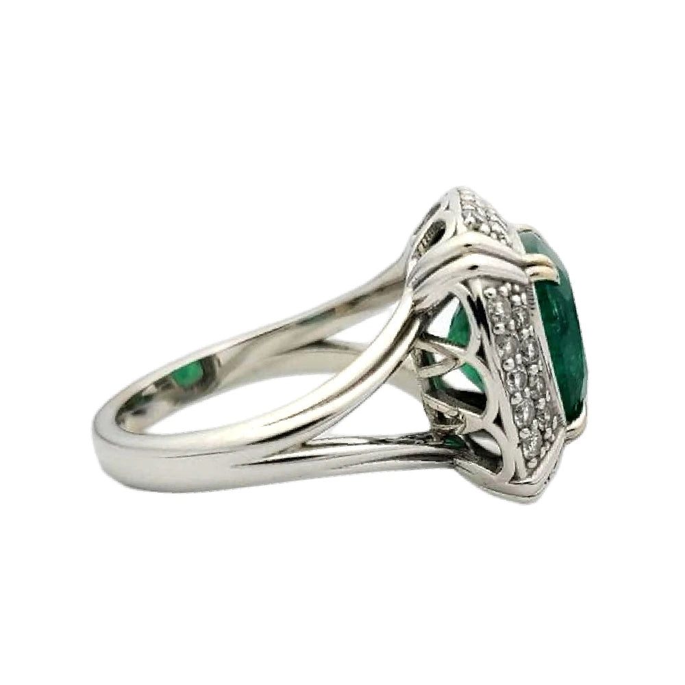 Emerald ring diamond white gold 14k green cushion 5.60ctw gia certified