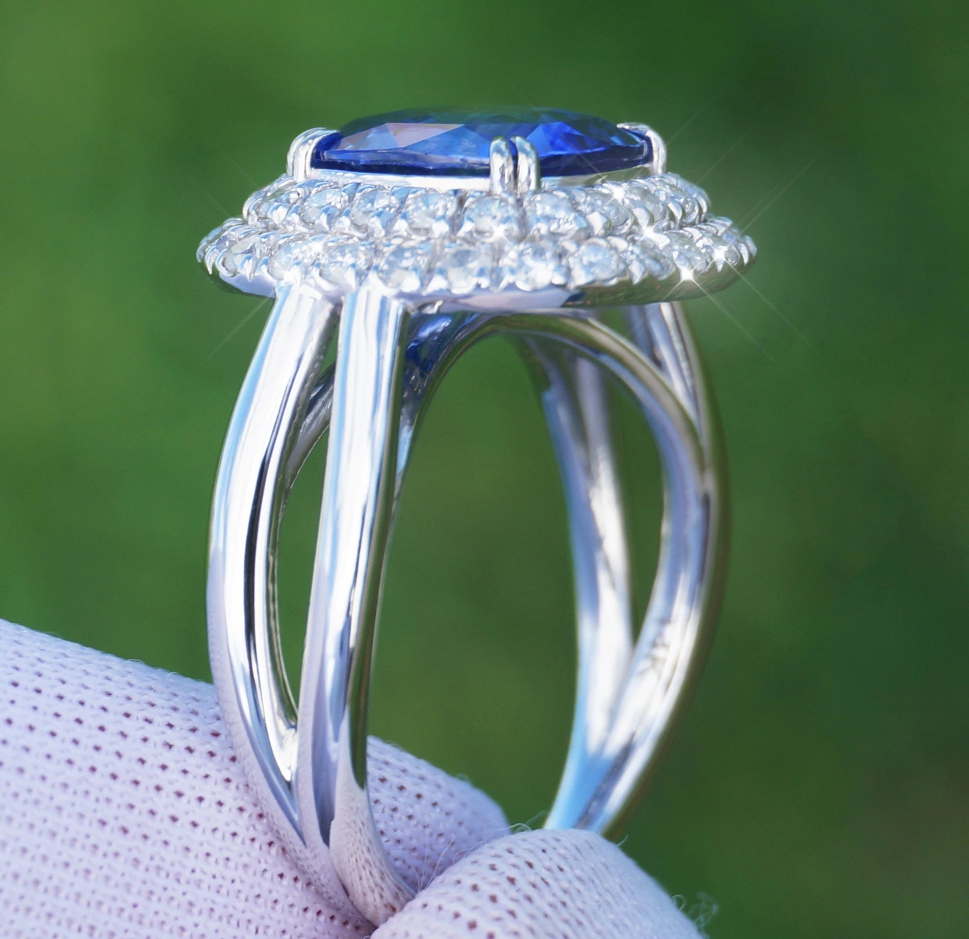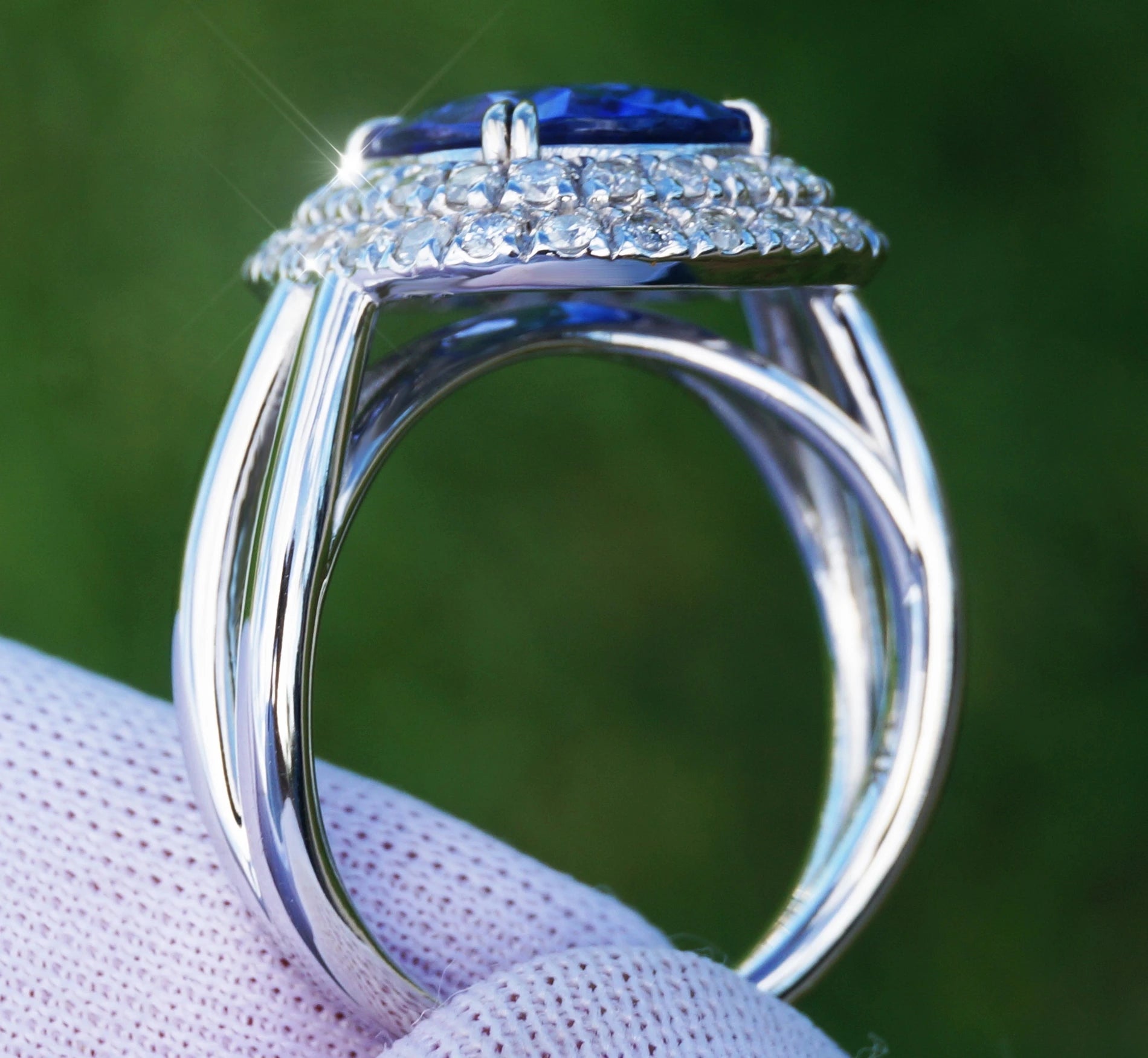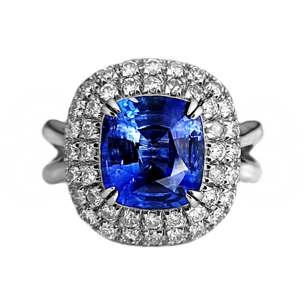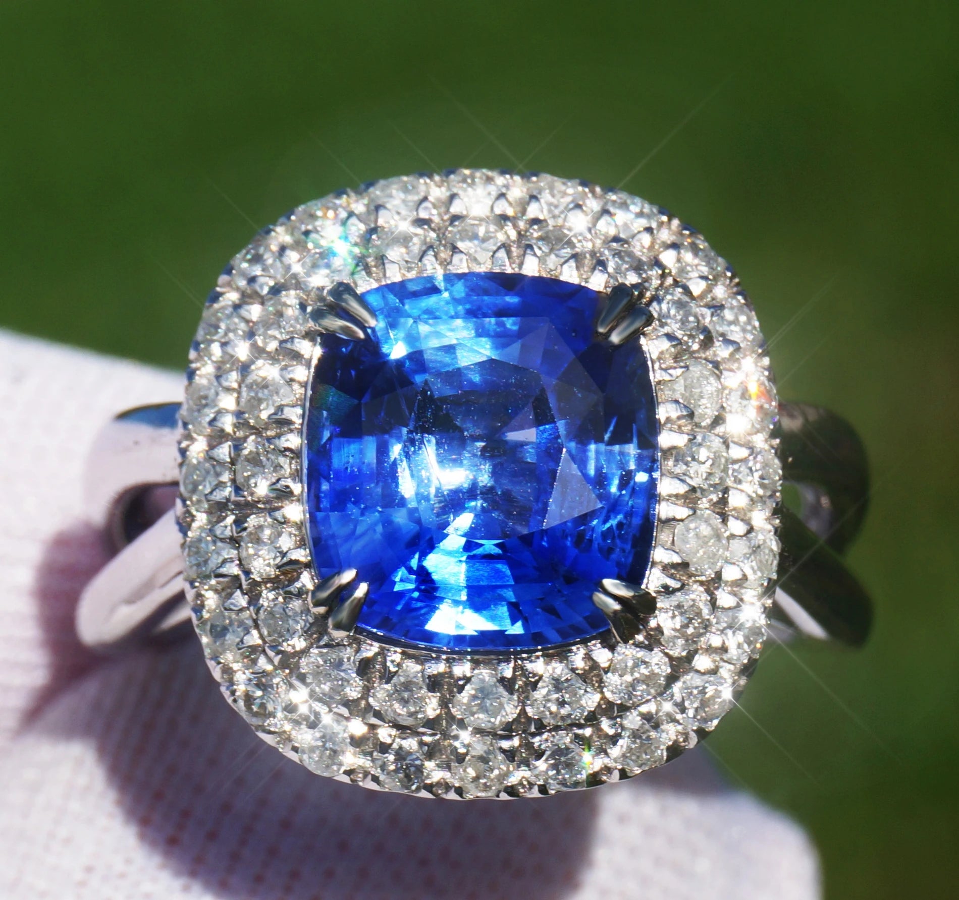 gold 14k Sapphire & diamond ring 4.46ctw gia certified madagascar cushion blue