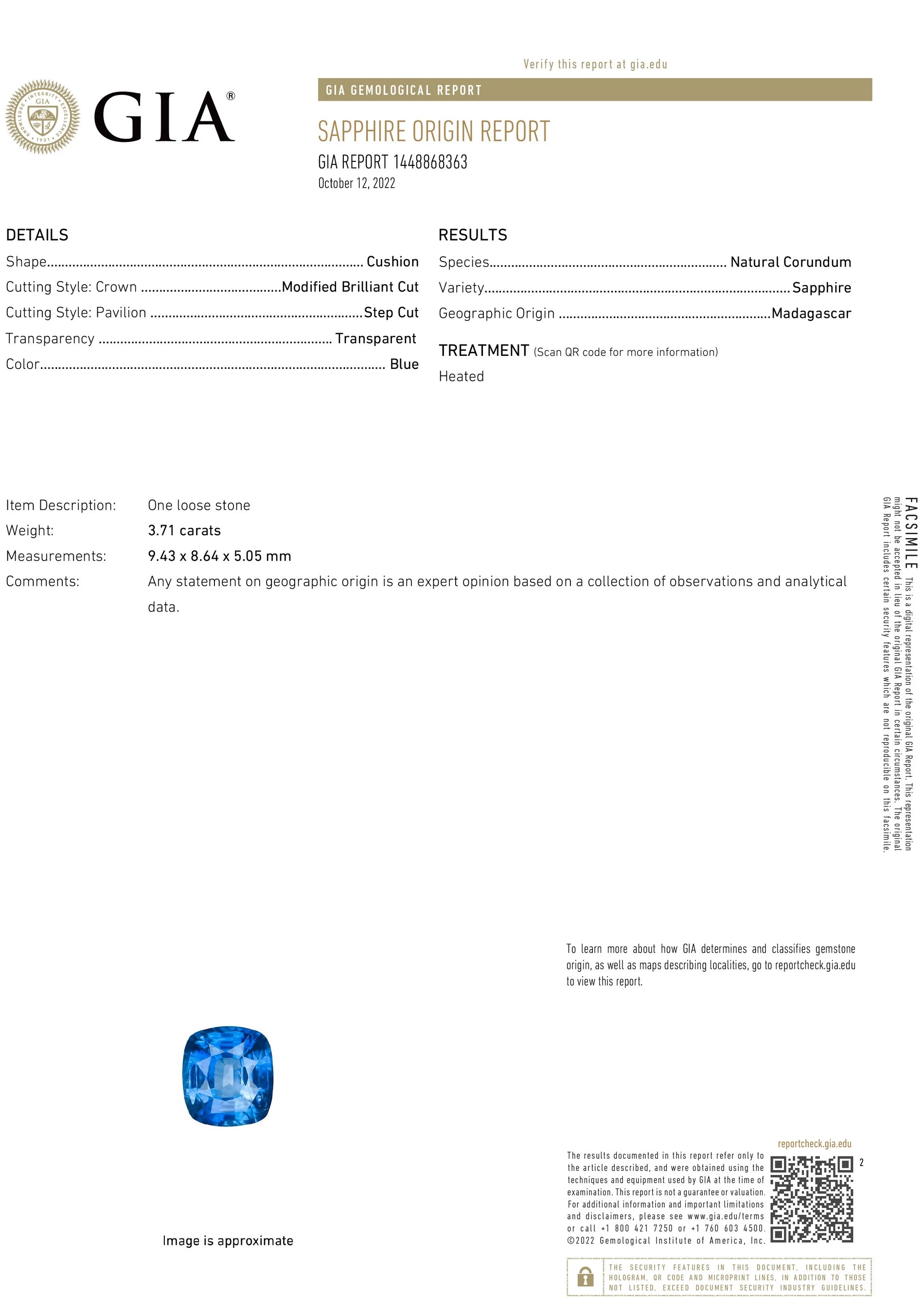 Certification: GIA Certificate is included. The Appraisal certificate is available for the additional $35, upon request.