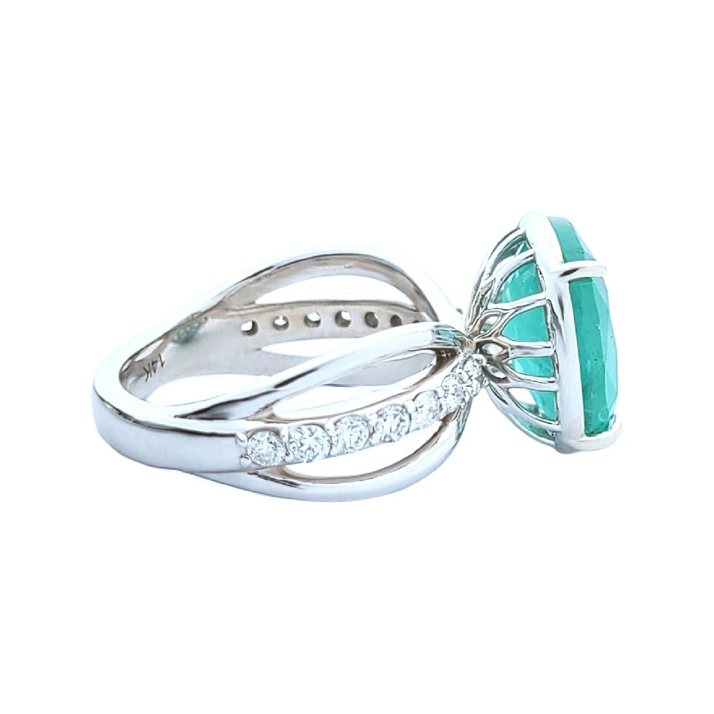 Emerald ring white gold 14k diamond 5.7ctw gia certified cushion cur split shank