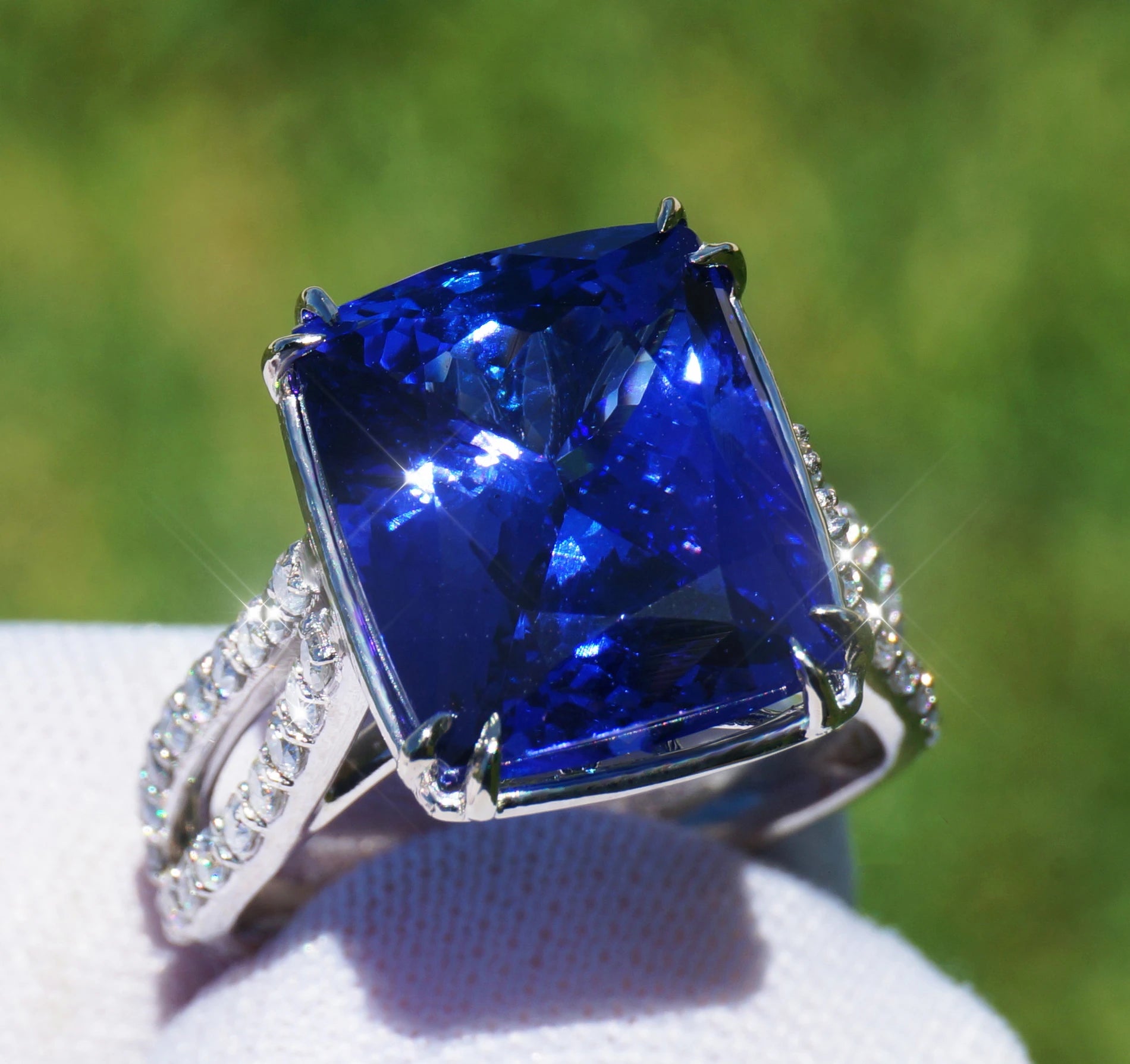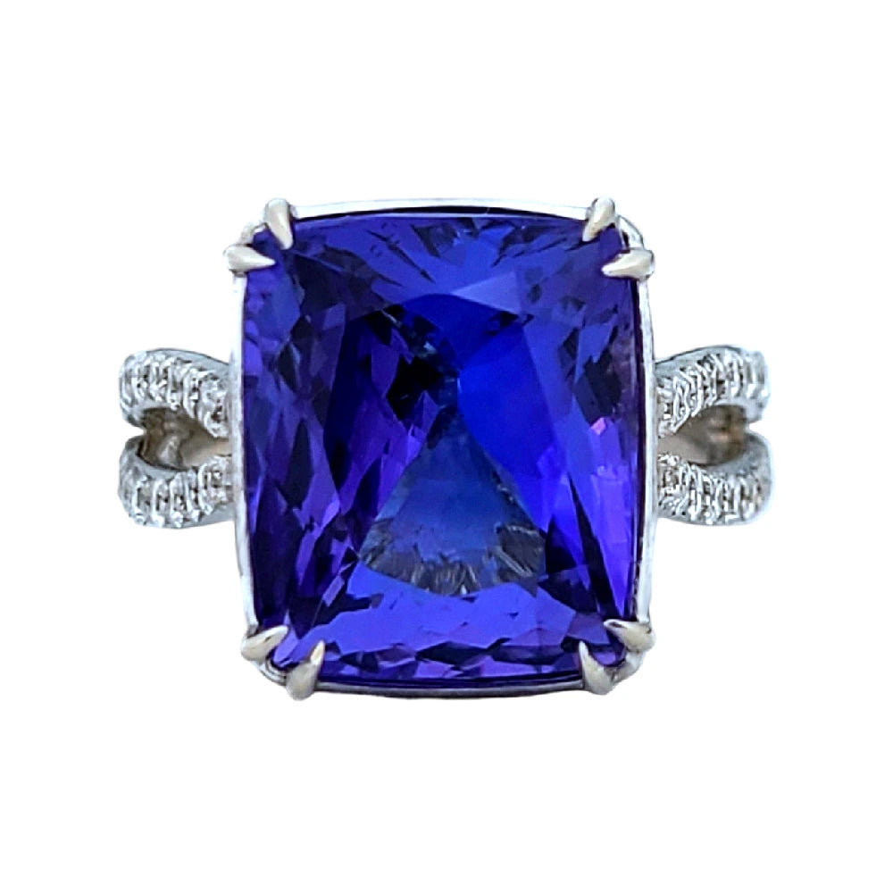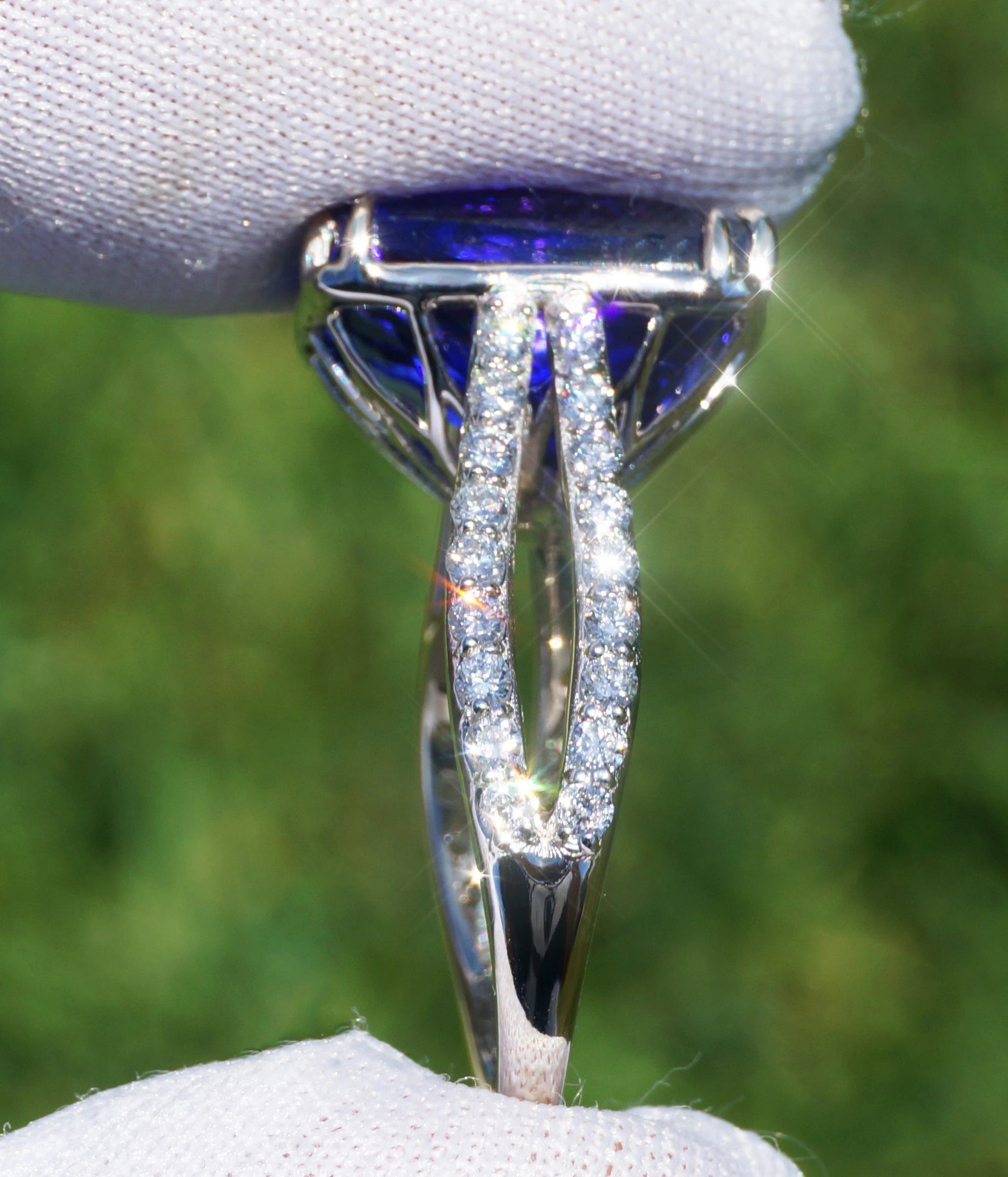 Tanzanite & diamond ring white gold white 14k no heat gia certified 10.86ctw