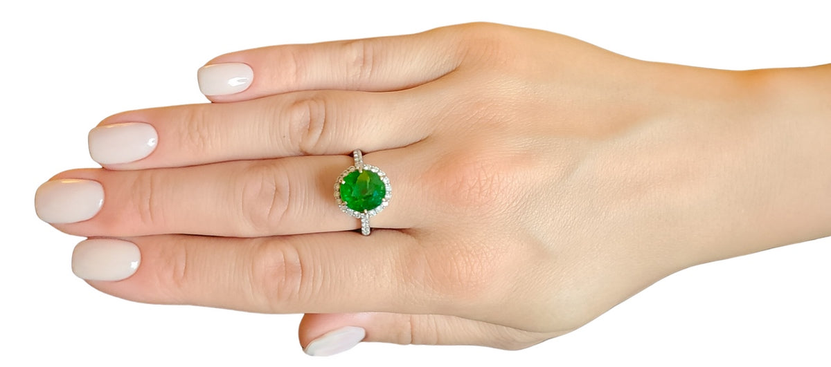 Tsavorite diamond white 14k gold ring 6.62 ctw certified green grossular garnet brilliant cut