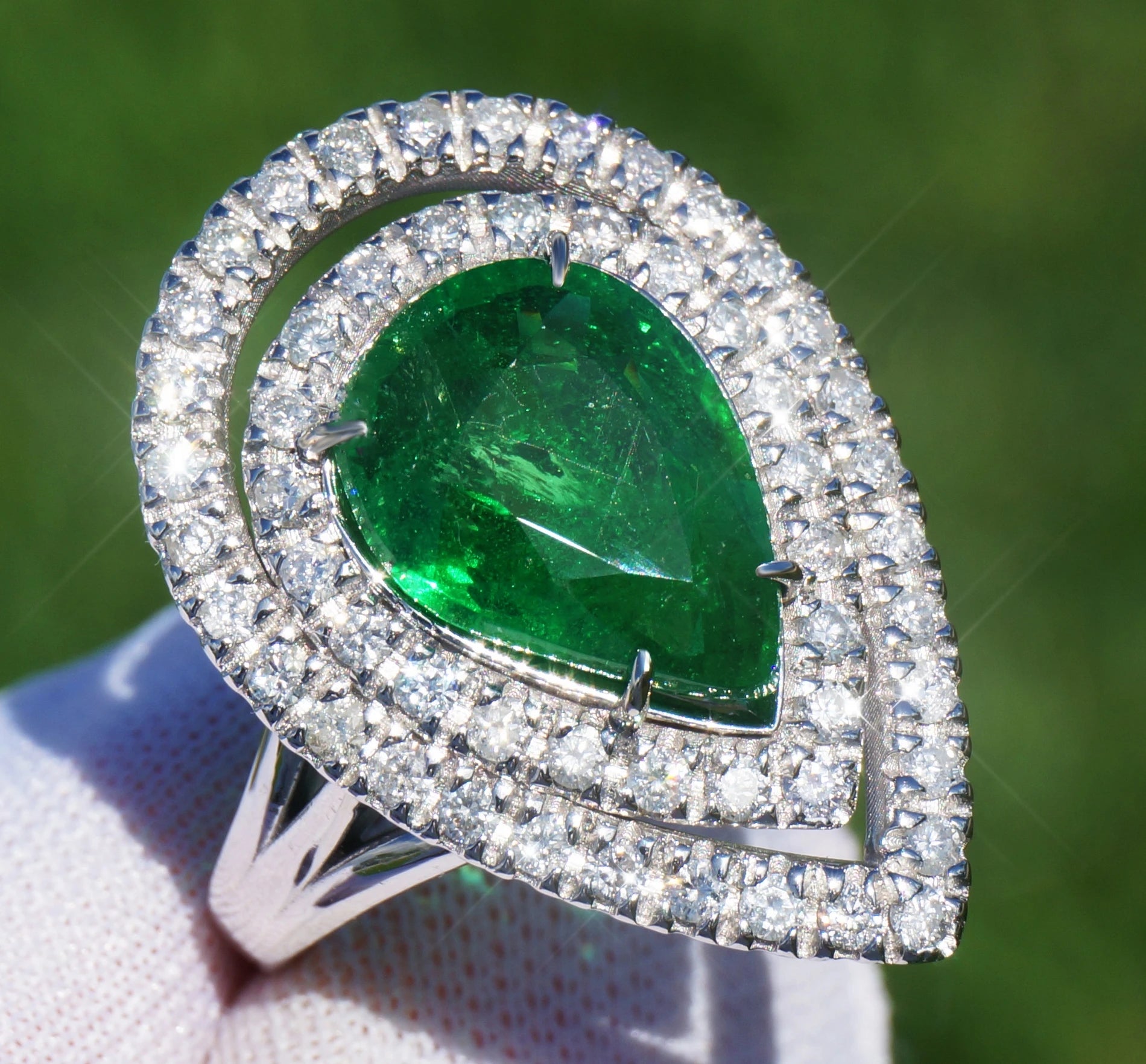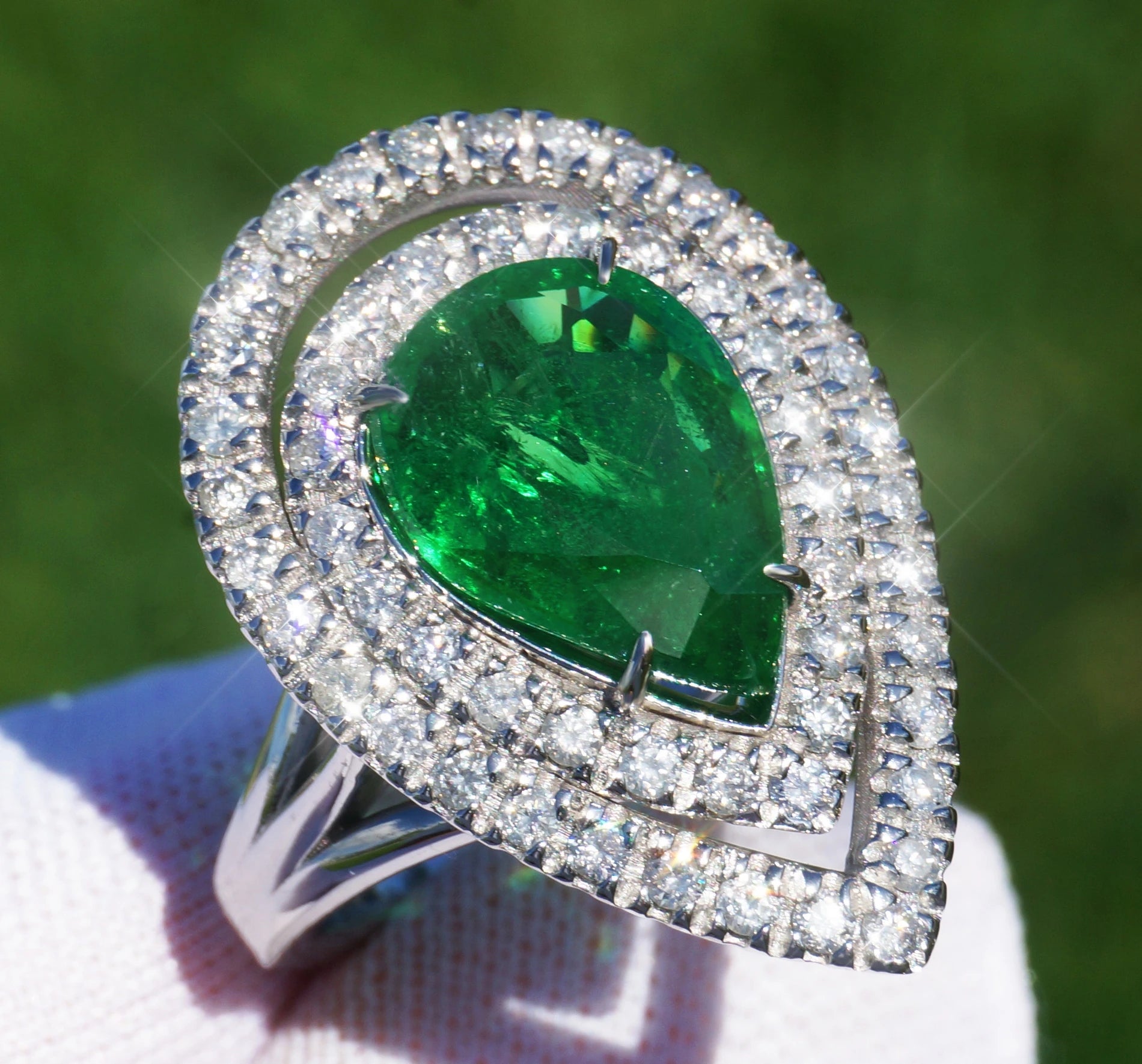 Tsavorite ring white gold 14k diamond grossular garnet 6.08ctw gia certified pear cut