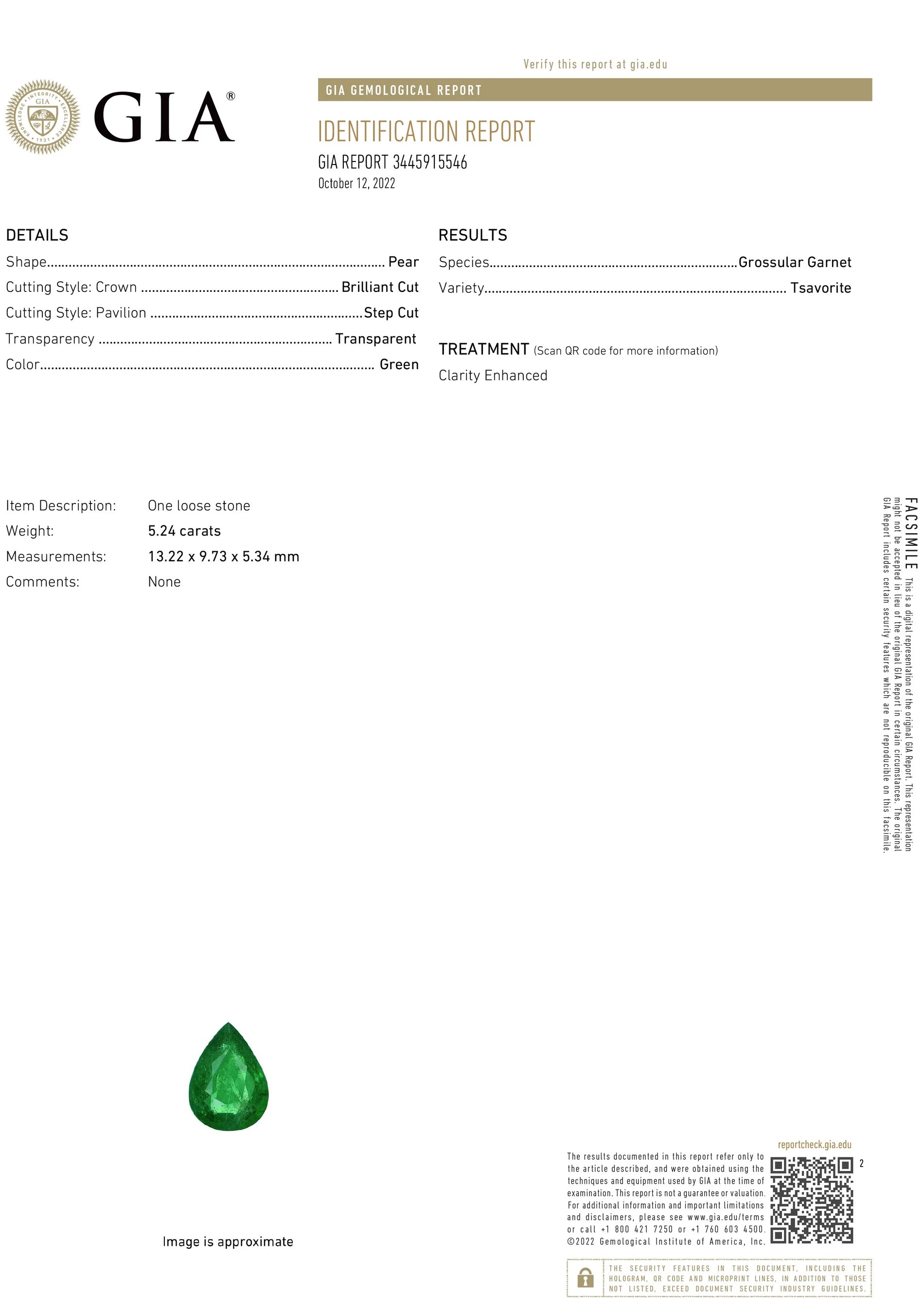 Certification: GIA Certificate is included. The Appraisal certificate is available for the additional $35, upon request.